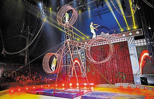 10月4日,第二十届中国吴桥国际杂技艺术节国际马戏嘉年华在正定古城南门外广场火热上演。 本报记者 张昊摄