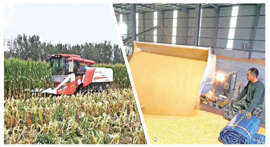 图①:10月9日,肥城市安驾庄镇朱家颜子村秋收现场。(李培乐 董效晏)图②:10月9日,东营市东营区谭家大棚种植农民专业合作社里,工作人员对已经烘干的玉米进行装车收储。(缪宏伟)