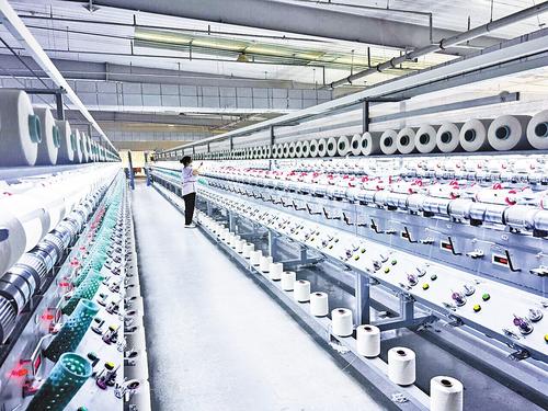 9月16日,圣翔染厂生产车间,工人进行纱线松筒。本报记者 常方圆摄