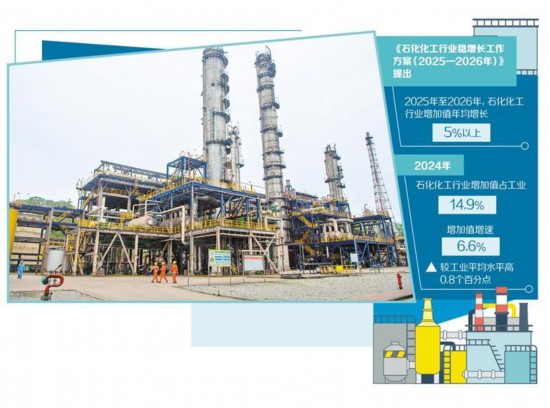 工业和信息化部等7部门近日联合印发《石化化工行业稳增长工作方案(2025—2026年)》(以下简称《方案》),提出2025年至2026年,石化化工行业增加值年均增长5%以上,经济效益企稳回升等目标。