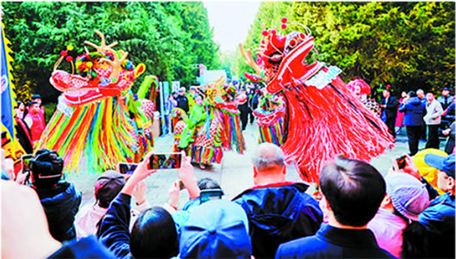 10月28日,在北京市月坛公园,黄骅麒麟舞精彩上演。