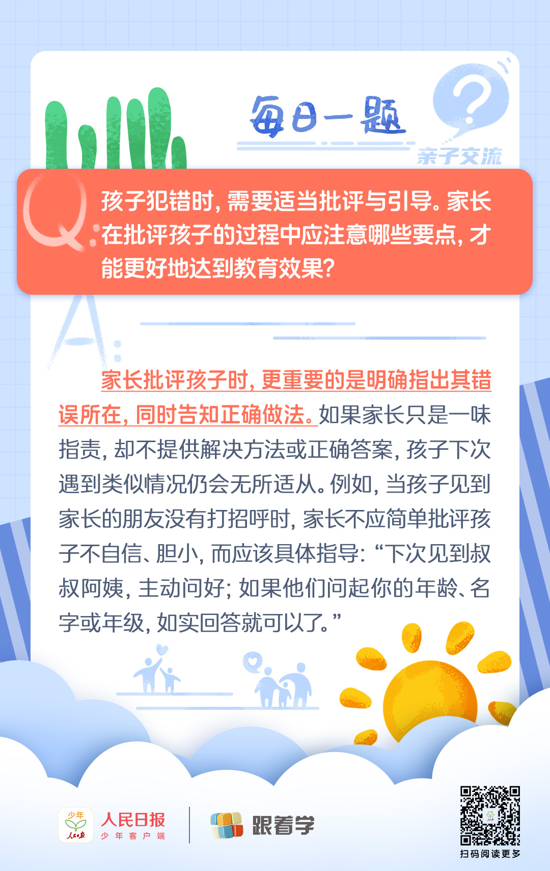 每日一题丨孩子做错了事情,家长批评孩子需要