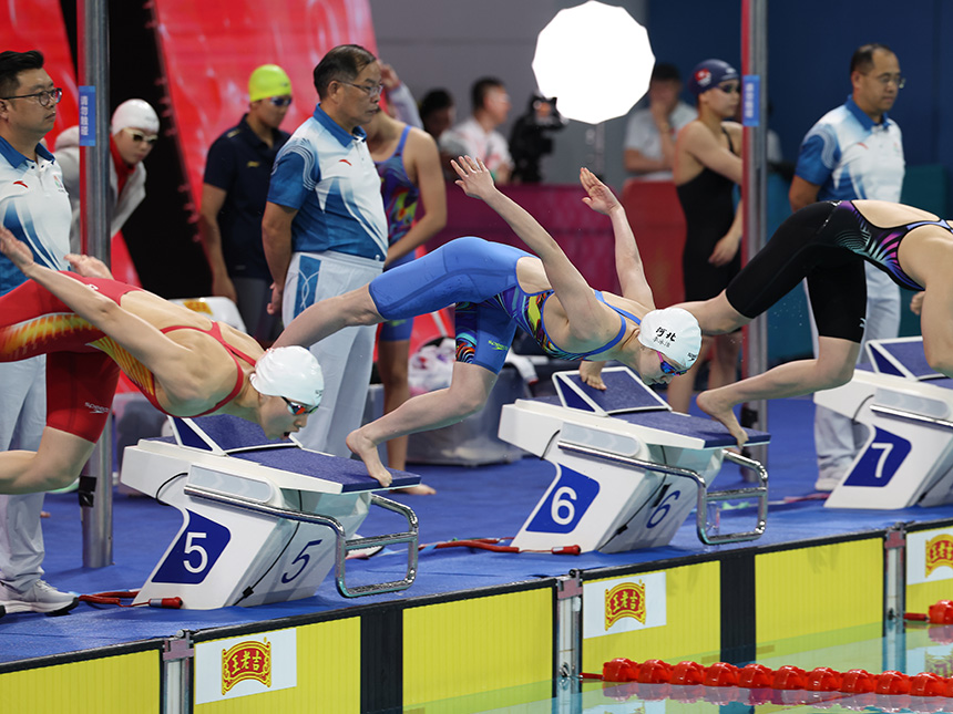 女子4×100米自由泳接力比赛现场。耿辉摄