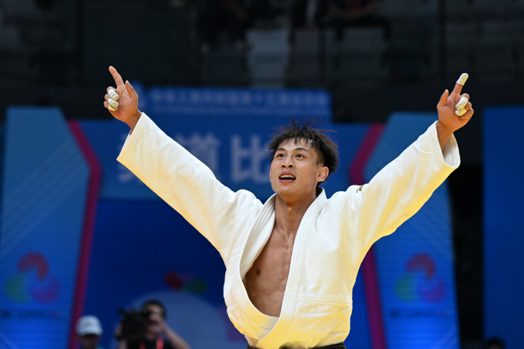 河北队选手薛紫阳赛后庆祝胜利。河北省体育局供图