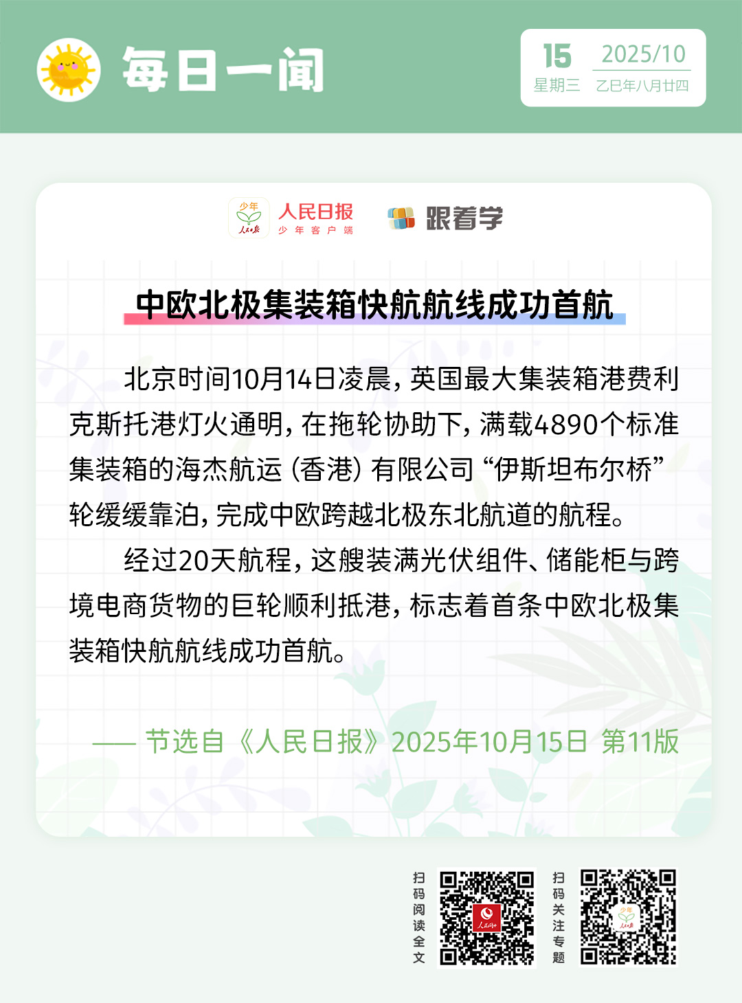 每日一闻 | 中欧北极集装箱快航航线成功首航