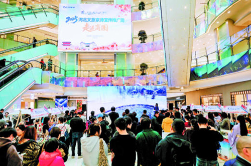 10月29日,在北京王府井apm商场,河北文旅推介活动吸引人们驻足观看。