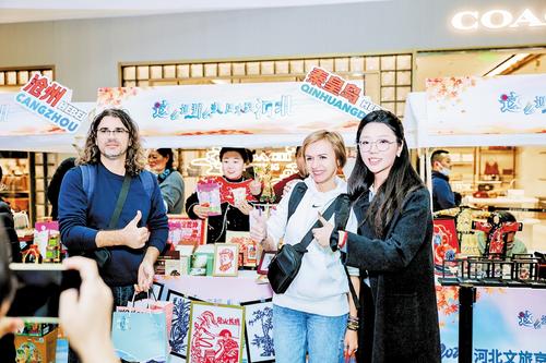 10月29日,在北京王府井apm商场,河北文旅特色市集吸引了外国游客。