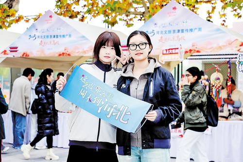 10月30日,在北京第二外国语学院,学生们在河北文旅特色市集前拍照留念。 本版图片除署名外由河北省文化和旅游厅提供