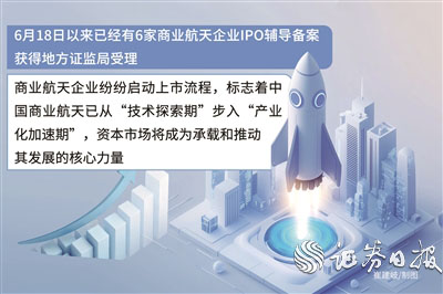 今年以来,我国对商业航天高质量发展支持举措逐步完善,资本市场也向行业优质企业打开大门。6月18日,科创板改革“1+6”政策措施发布,将商业航天纳入第五套标准适用范围。此后,商业航天企业密集启动IPO。记者根据公开信息梳理,6月18日至11月27日,已经有6家商业航天企业IPO辅导备案获得地方证监局受理。