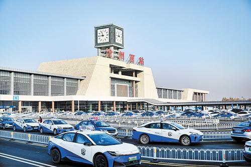 11月26日,出租车在沧州西站站前广场排队等候乘客。 本报记者 张昊摄