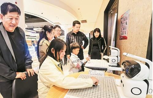 雄安商服会展中心地下商业环廊内,市民正在和机器人下五子棋。李畅摄