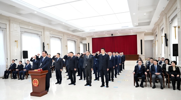 根据《中华人民共和国宪法》和《黑龙江省国家工作人员宪法宣誓办法》,省政府任命的48名国家工作人员依法进行宪法宣誓。