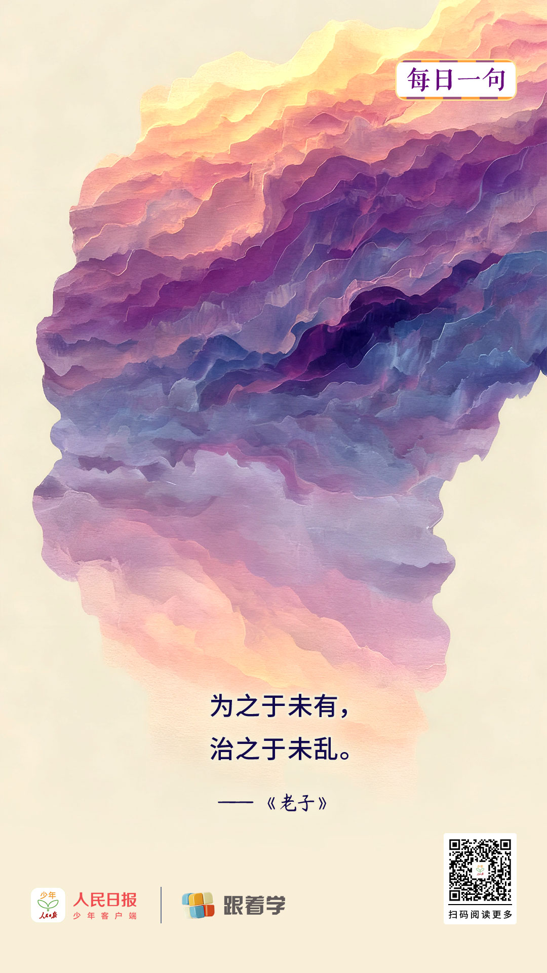 释义:做事,要在尚未发生以前就着手;治理国政,要在祸乱没有产生以前,就早做准备。