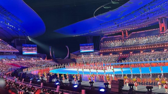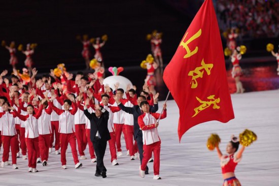 11月9日20时,中华人民共和国第十五届运动会开幕式在广东奥林匹克体育中心举行。各参赛代表团代表入场,山东省代表团亮相,获得掌声与欢呼。