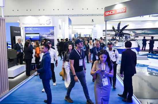 2025年5月20日,观众参观马来西亚兰卡威国际海事和航空展的室内展览。新华社记者程一恒摄