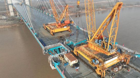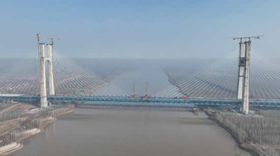 尤为值得一提的是黄河公铁大桥本身。受黄河不通航等限制,4.92万吨钢梁需在现场“散件散拼”。建设者采用两台75吨大型架梁吊机,像“搭积木”一样,将84个巨大节段从两端向中间精准拼接,并于去年9月提前8个月完成两座203.6米高的主塔封顶,为最终合龙奠定基础。大桥还创新取消传统下横梁,采用刚架结构,既优化受力,又节约工期,展现了我国桥梁建造的先进水平。