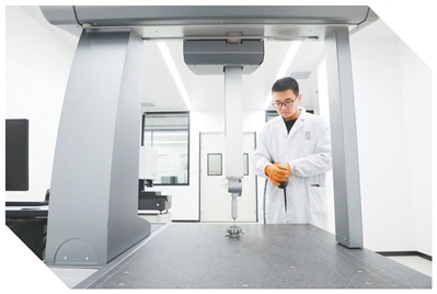 技术人员在中塞(国际)轴承产业共享实验室检测轴承三维尺寸。 |