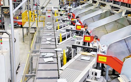 10月23日,河北顺丰速运石家庄高开转运中心工作人员正在分拣快递。 本报记者 史晟全摄