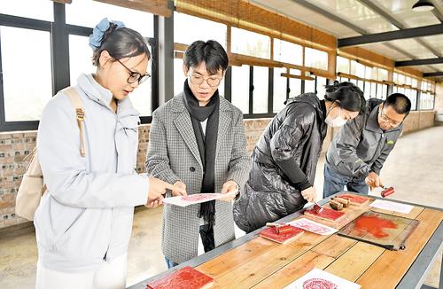 10月22日,在保定市华融纸厂,参观者体验版画制作。本报记者 寇国莹摄