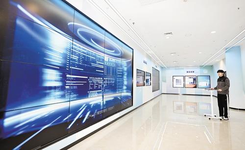 10月27日,工作人员在石家庄人工智能计算中心展厅调试设备。 本报记者 史晟全摄