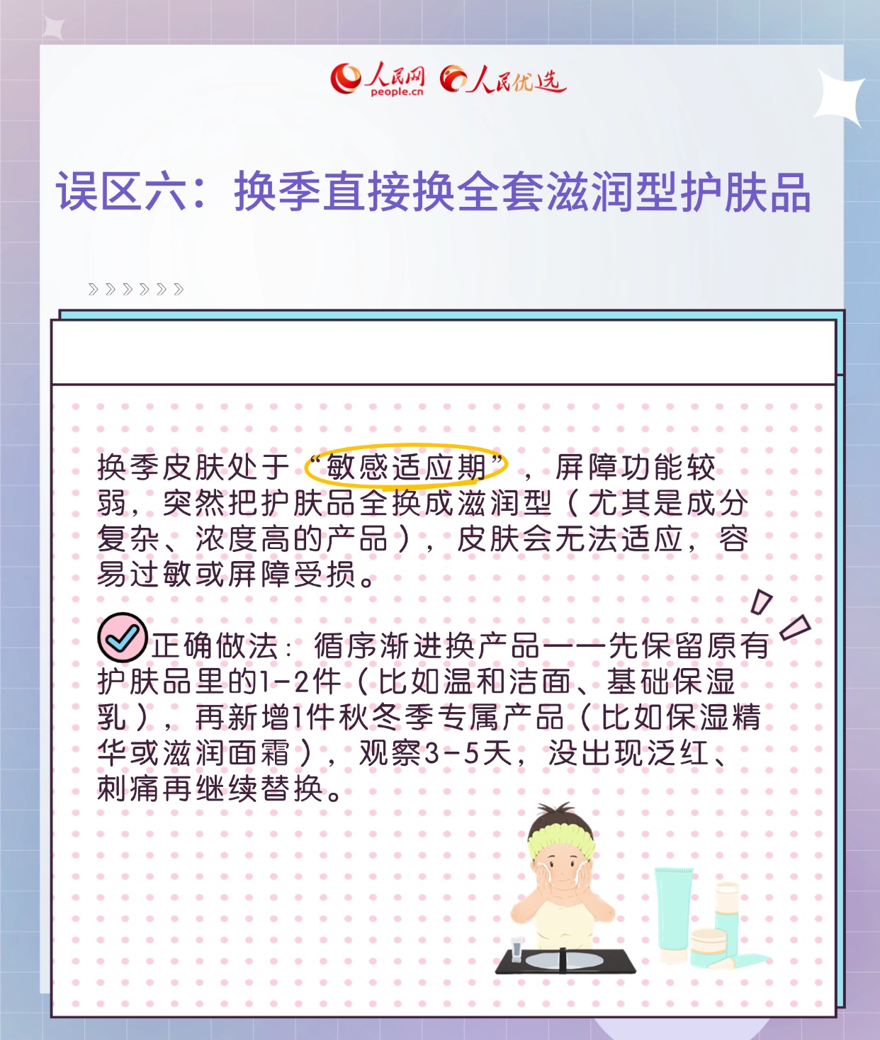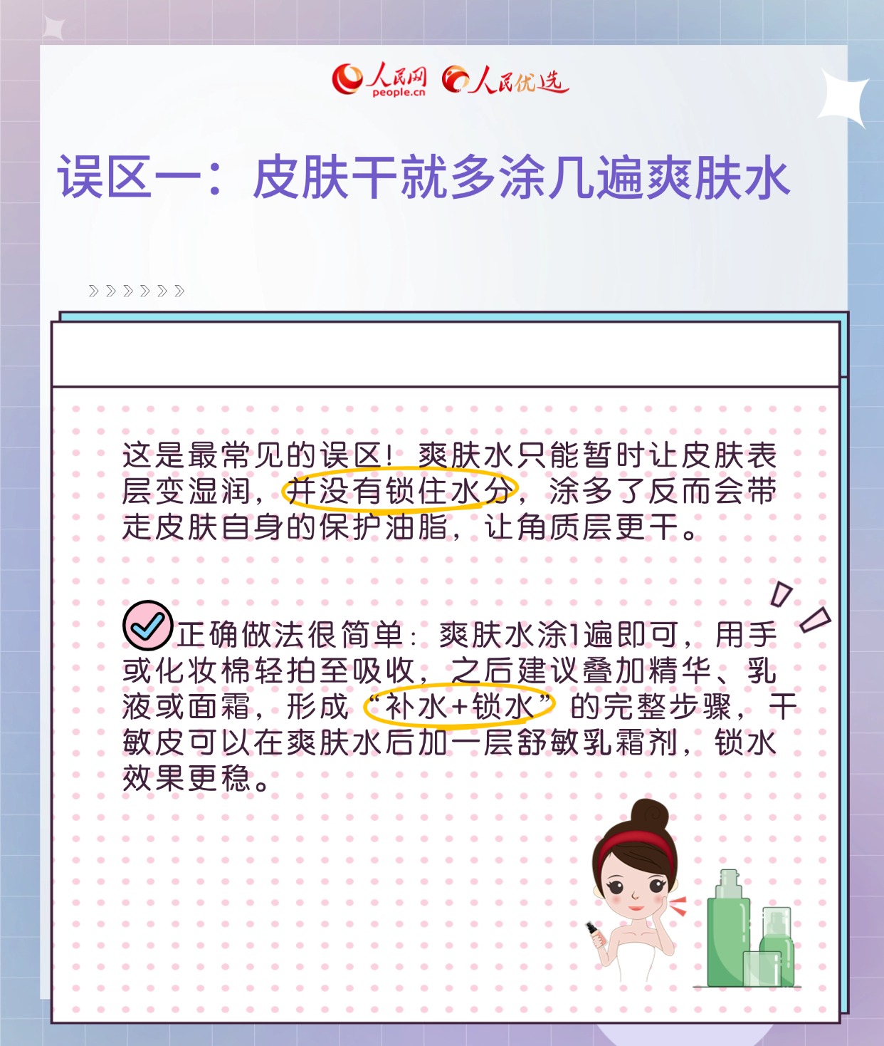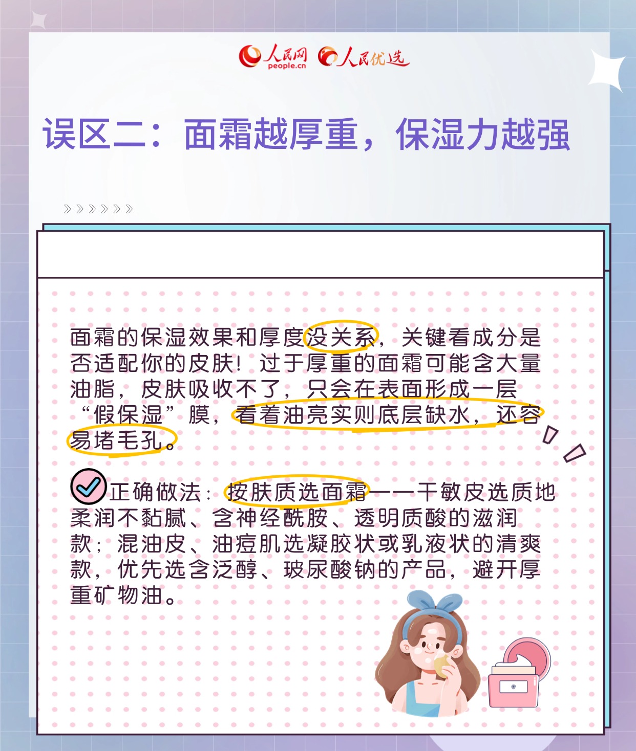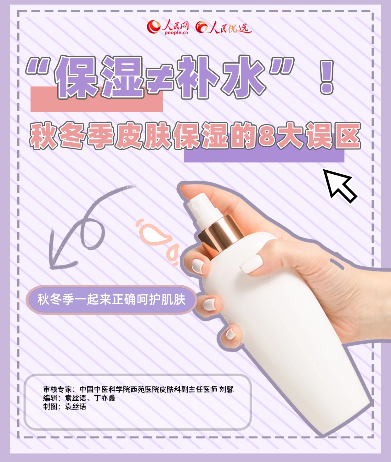 冬季皮肤干燥、紧绷甚至脱屑皲裂,其实是气温下降、空气湿度变低导致皮肤水分快速蒸发的正常现象。很多人急于补水保湿,却因方法不当效果不佳。本期《人民优选来了》,为你梳理下面8个秋冬护肤常见误区,快看看你有没有中招!