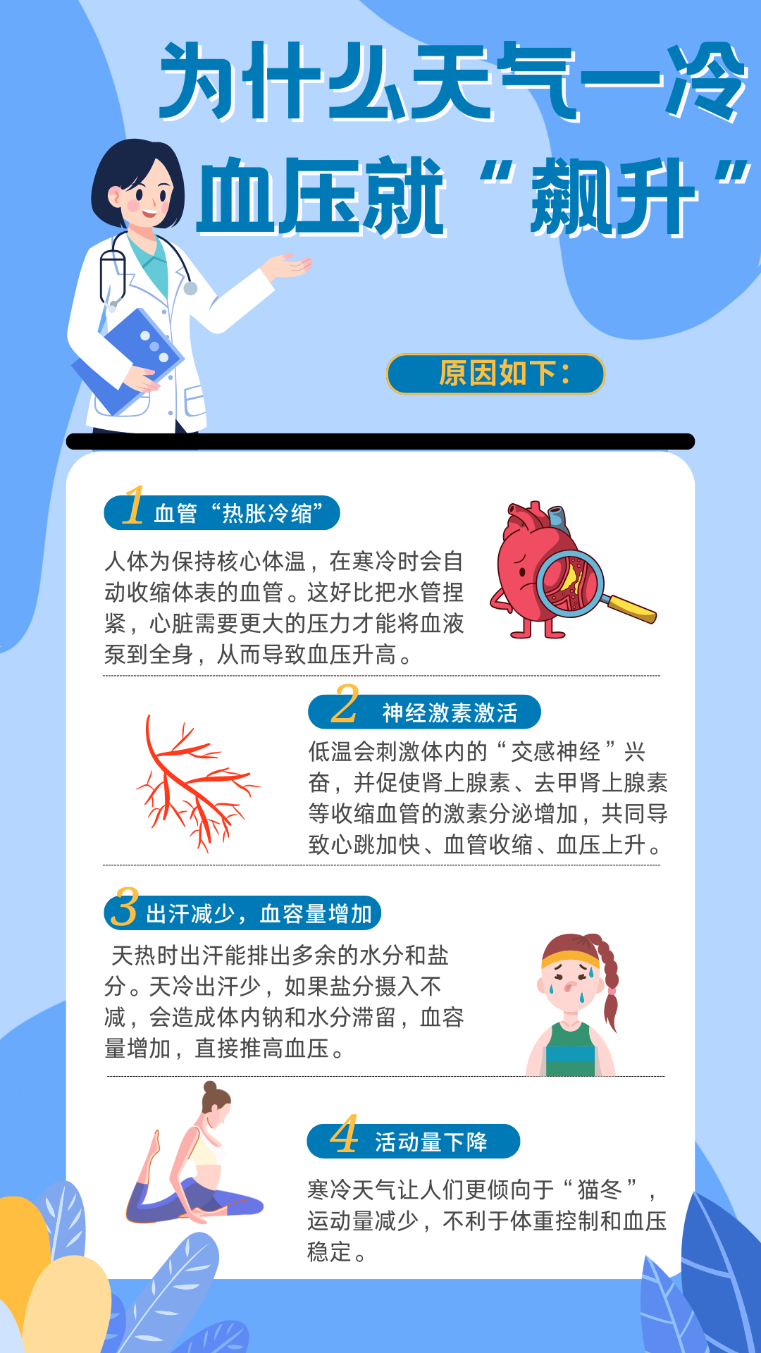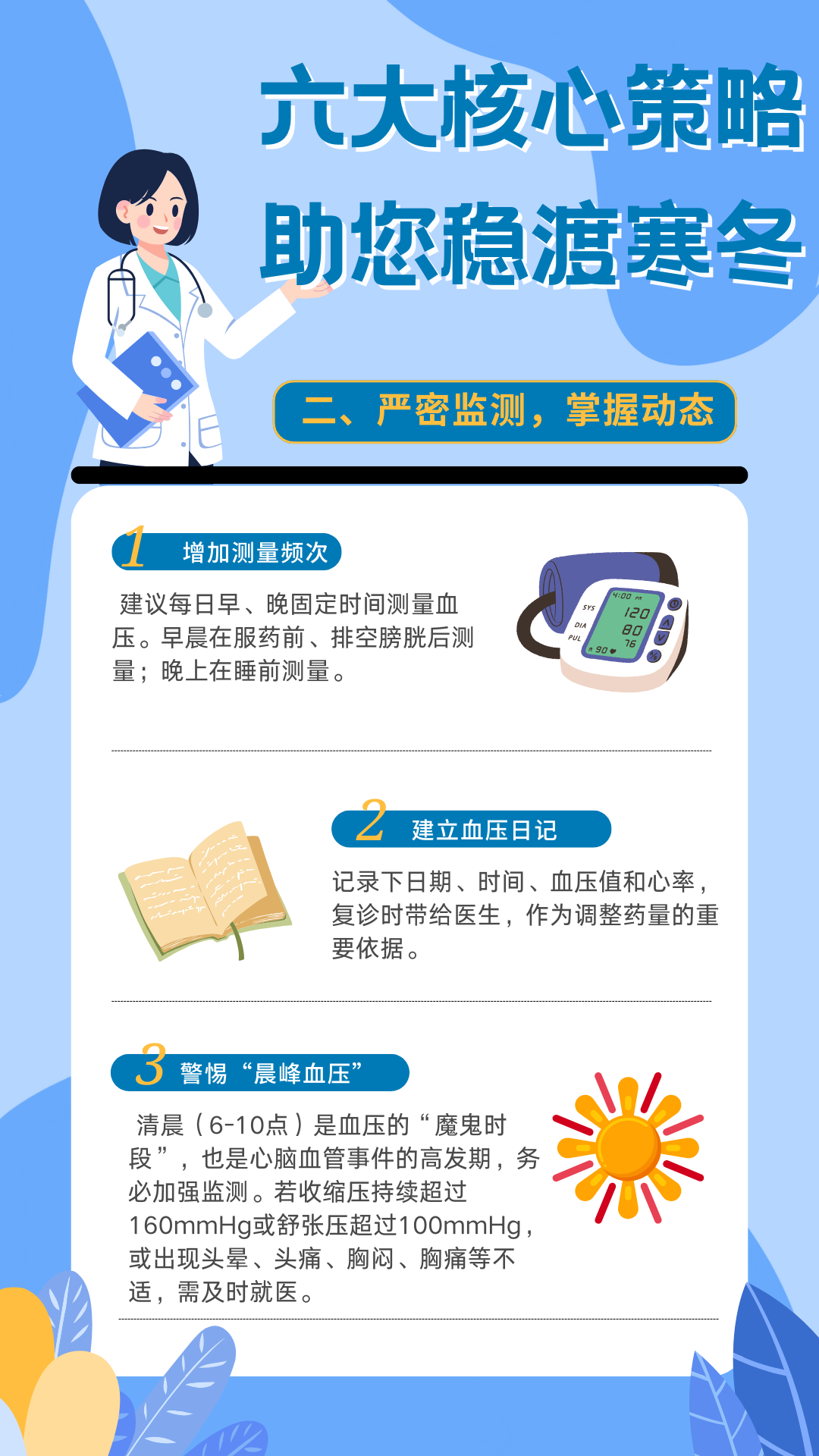 随着气温持续走低,高血压患者迎来了血压波动的 “敏感期”。 血压一波动,心脑血管出问题的风险也会跟着涨。今天就给大家整理了一份实在的稳压攻略,从日常监测到穿衣吃饭都有讲究,帮你稳稳度过这段冷日子。