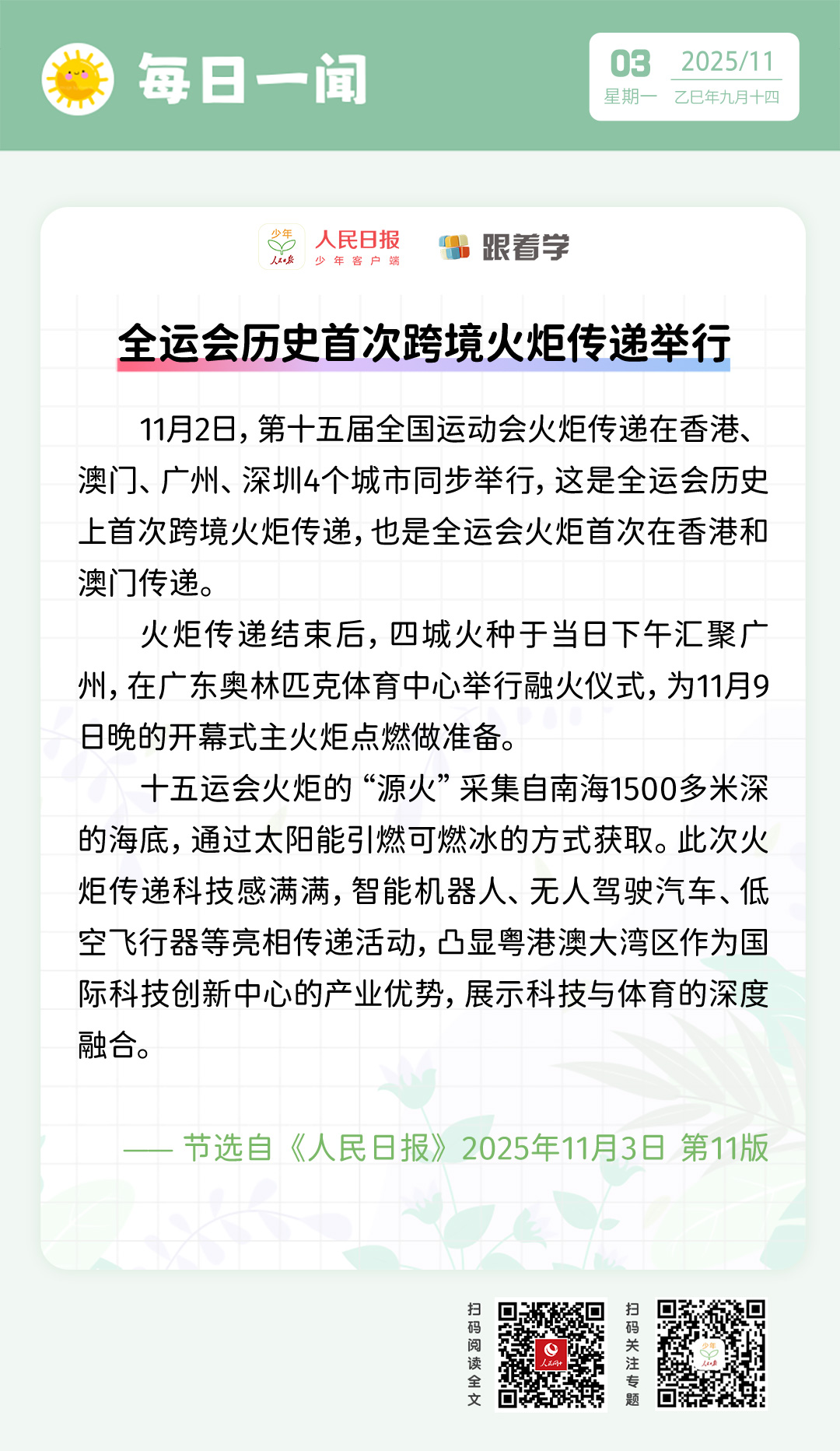 每日一闻丨全运会历史首次跨境火炬传递举行