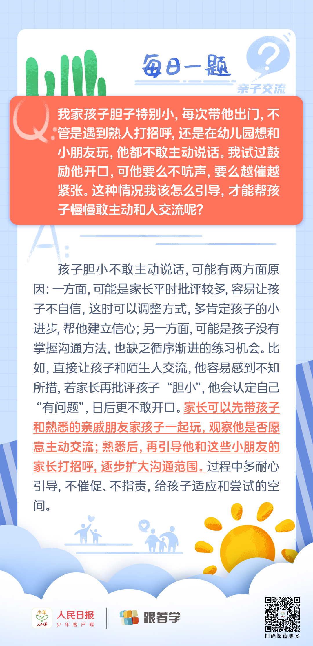 每日一题丨孩子胆小不敢主动说话怎么办?