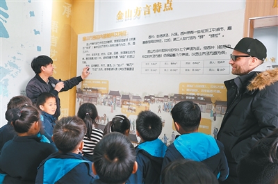 “南瓜用金山话怎么说?青团、茄子……每一个镇都有不同的说法。”作为志愿者,吴飞得来到村里,给海棠小学的孩子们讲解金山方言知识以及传统习俗。请一位外国年轻人讲中华传统习俗和中国地方方言,有人觉得新鲜,有人觉得不可思议。