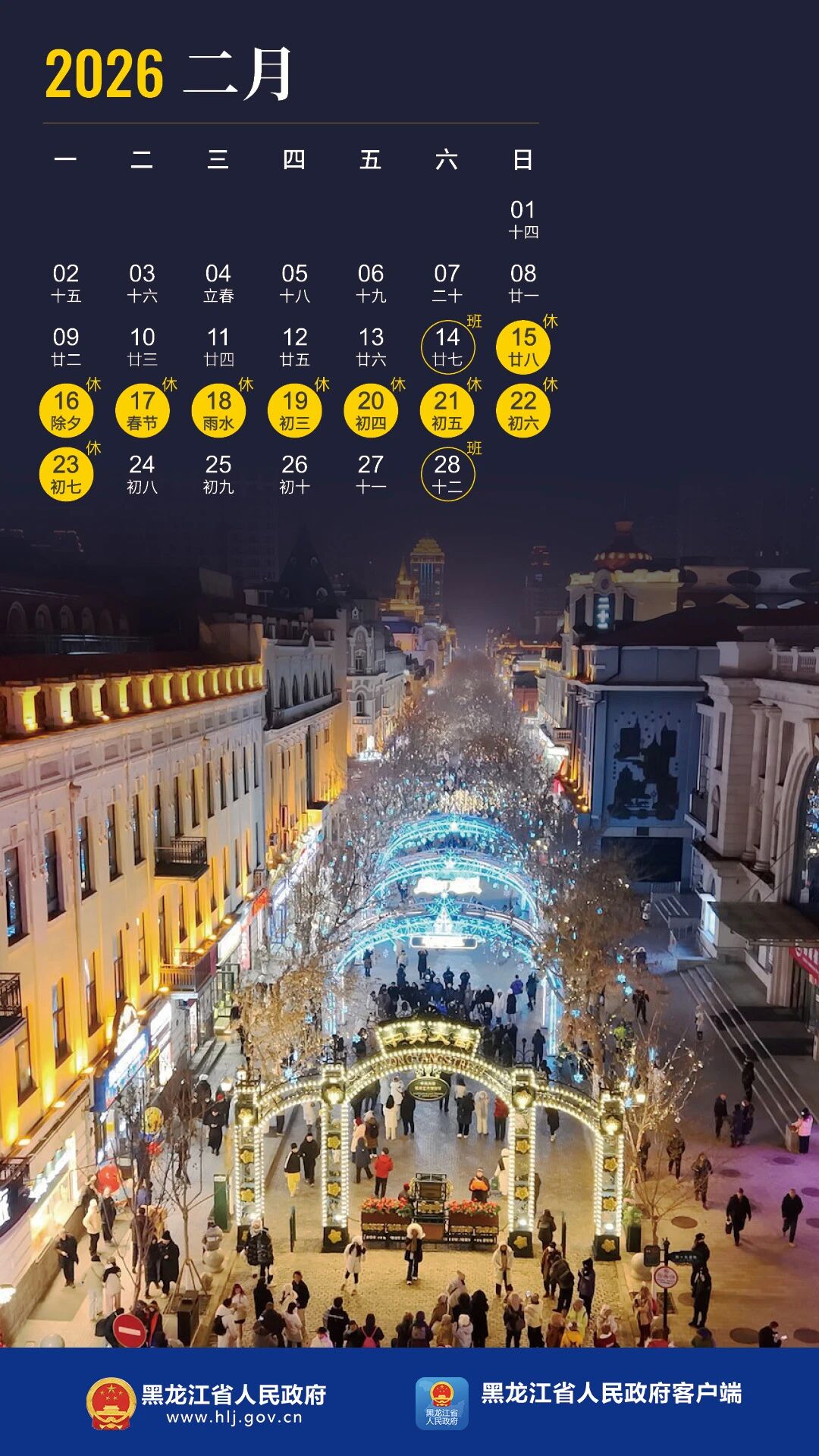 当2026年的晨光洒向龙江大地,冰封的江河孕育生机,广袤的黑土蕴藏暖意,新的一年焕然上新。我们准备了一份黑龙江专属日历,希望这份专属日历,陪你走过2026的龙江四季。