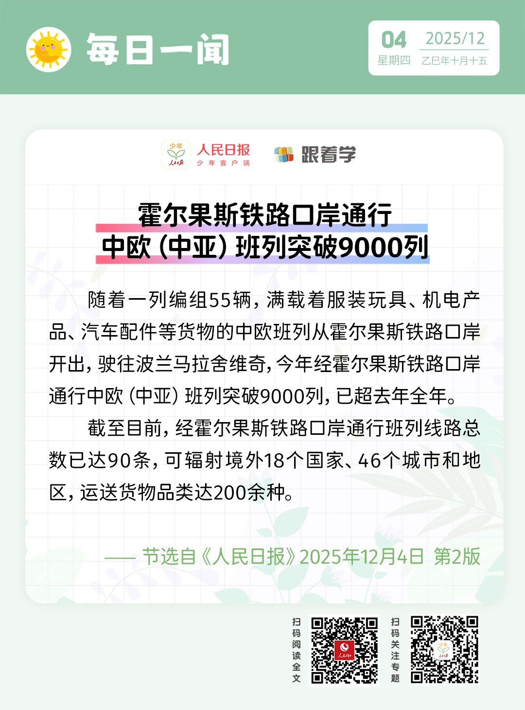 每日一闻丨霍尔果斯铁路口岸通行中欧(中亚)