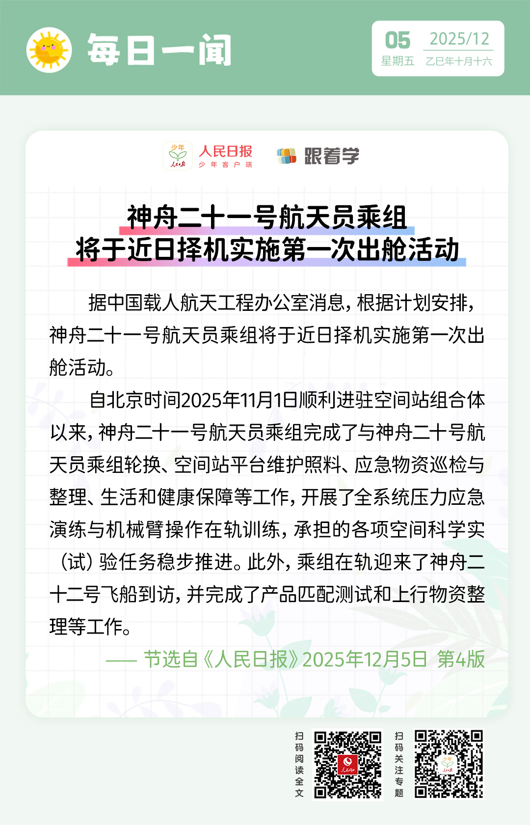 每日一闻丨神舟二十一号航天员乘组将于近日择