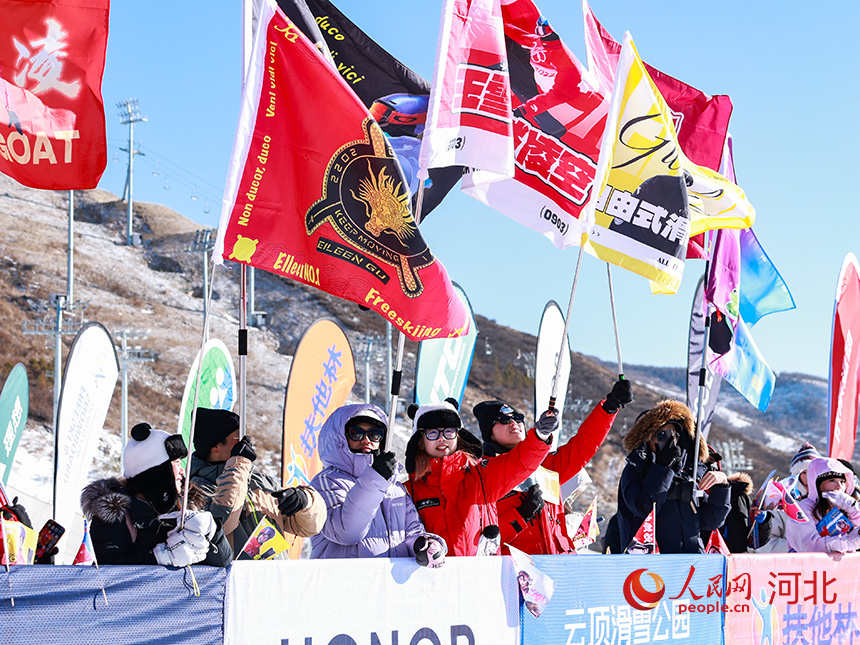 12月11日女子自由式滑雪U型场地比赛现场,观众正在为选手加油助威。人民网记者 李兆民摄