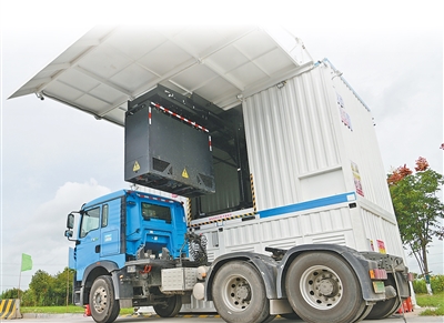 江苏太仓沙溪服务区,一辆新能源重卡在换电站更换电池。 |