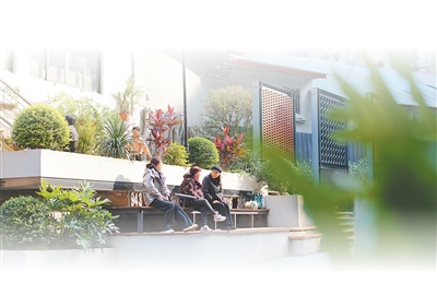 重庆市沙坪坝区沙坪坝街道一心村社区,居民在更新改造后的街巷休息。 |