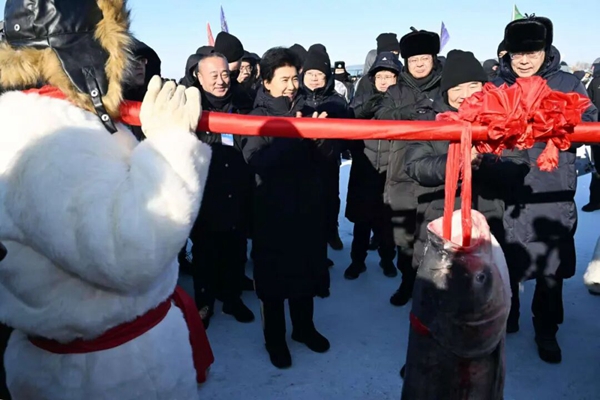 梁惠玲代表黑龙江省委省政府对各位嘉宾表示欢迎。她说,黑龙江作为内陆水域资源大省,渔猎文化历史悠久,渔业资源丰富。近年来,省委省政府深入贯彻落实习近平总书记重要讲话重要指示精神,围绕打造践行大食物观先行地,深入实施冷水渔业振兴行动,持续打好春育、夏放、秋捞、冬捕“四季牌”,不断将资源优势转化为发展优势。连续四年开展“冷水鱼·冬捕季”系列活动,有力促进了渔旅深度融合张力持续释放,拉动了冷水渔业不断发展壮大。我们将围绕“实施冷水渔业振兴行动,建设优质冷水鱼供应基地”,优化系列惠渔措施,打造市场化法治化国际化一流营商环境,不断开创冷水渔业发展新局面。诚邀国内外企业、投资者来龙江投资兴业,深化产业协同,在共享冷水渔业振兴发展机遇中实现互利共赢。