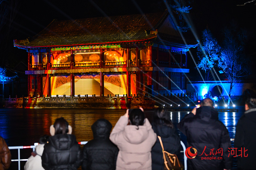 据介绍,此次灯会打造了文物大观园核心展区,共设置68组主题灯组,点亮15处经典古建筑,将避暑山庄馆藏钟表、瓷器、珐琅等珍贵文物转化成栩栩如生的艺术灯组,通过光影技术的加持,为沉睡百年的文物赋予了新的生命气息,让文物背后的历史故事生动呈现。游客漫步其间,既能感受皇家园林的恢宏意境,又能近距离读懂文物承载的历史文脉。