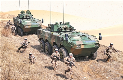 官兵进行车组协同战斗训练。