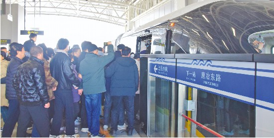 12月6日上午9时许,山东第一条云巴线路“济南云巴”开通运营,一大早不少市民过来“尝鲜”。