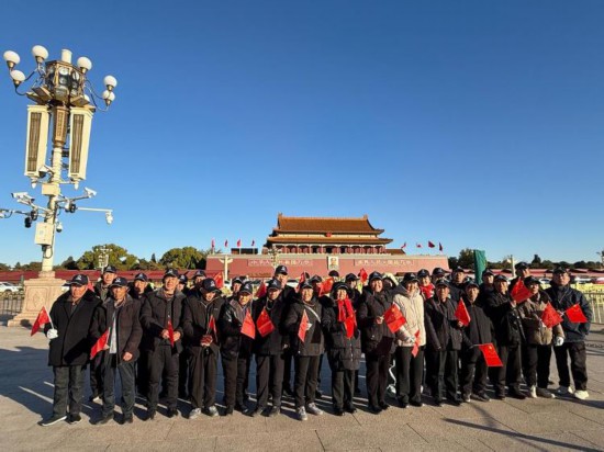 国旗升起时,老人们纷纷举起皲裂的手敬礼,有人跟着奏乐轻声唱起国歌。70岁的胡传太热泪盈眶:“没想到咱也能登上天安门啊!”