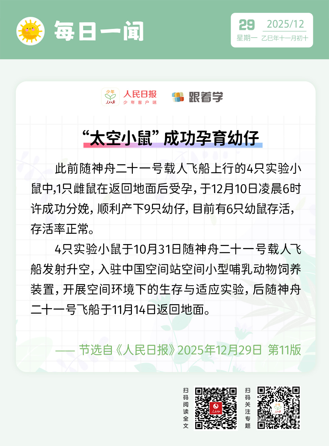 每日一闻丨“太空小鼠”成功孕育幼仔