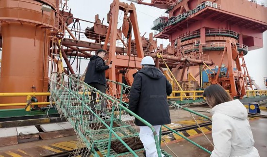 当天是腊月二十三,小年。一道光束划破码头的昏暗,王国锋踩着晃动的软梯登上甲板,“哐当”一声,金属接头撞在船舷上,清脆冷硬。他紧了紧安全帽带,脚下的步伐稳当有力。
