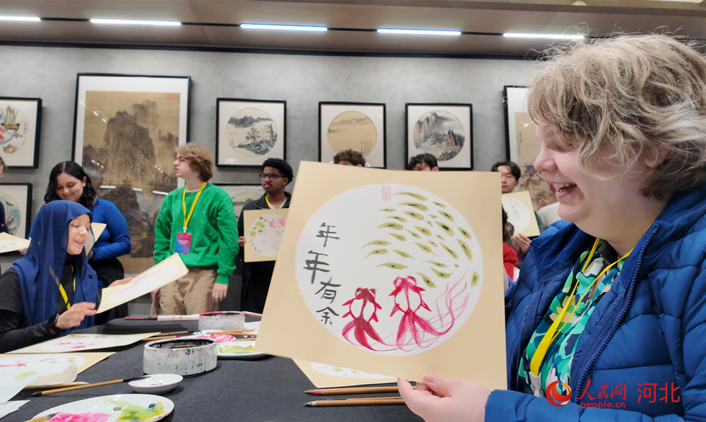 青少年“友谊传承”研学团成员展示学习和创作的作品。人民网记者 林福盛摄