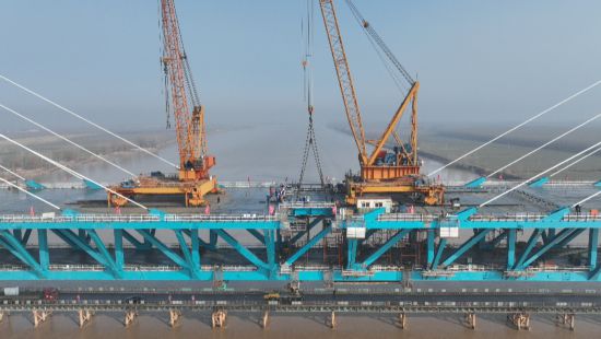 尤为值得一提的是黄河公铁大桥本身。受黄河不通航等限制,4.92万吨钢梁需在现场“散件散拼”。建设者采用两台75吨大型架梁吊机,像“搭积木”一样,将84个巨大节段从两端向中间精准拼接,并于去年9月提前8个月完成两座203.6米高的主塔封顶,为最终合龙奠定基础。大桥还创新取消传统下横梁,采用刚架结构,既优化受力,又节约工期,展现了我国桥梁建造的先进水平。