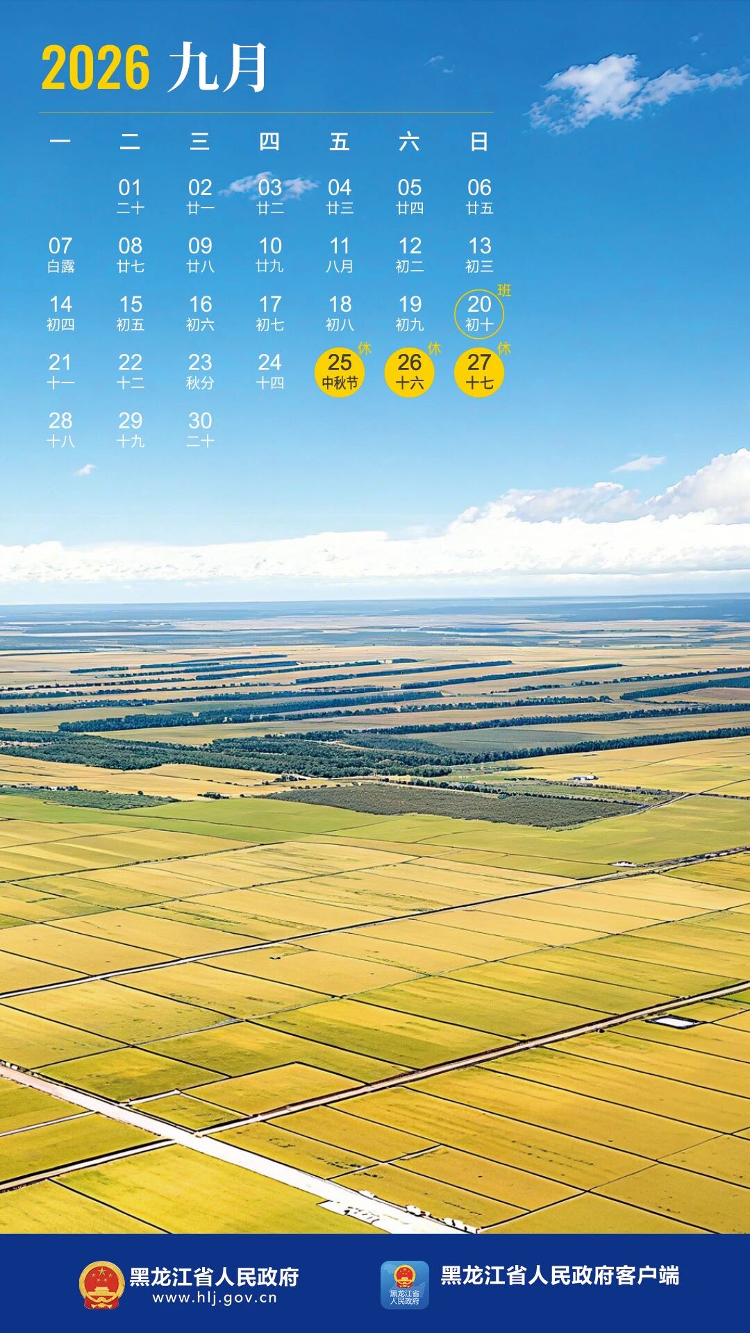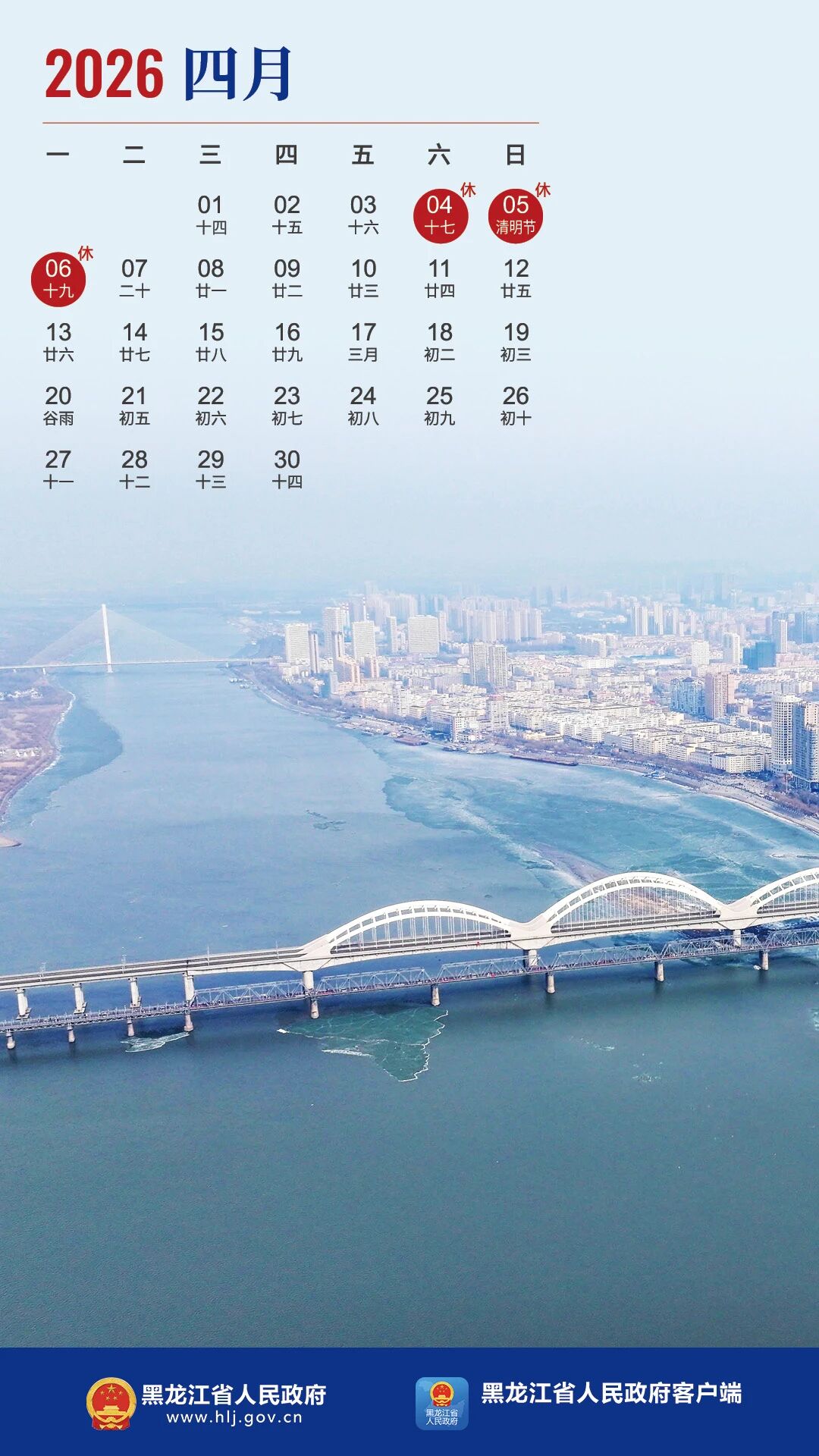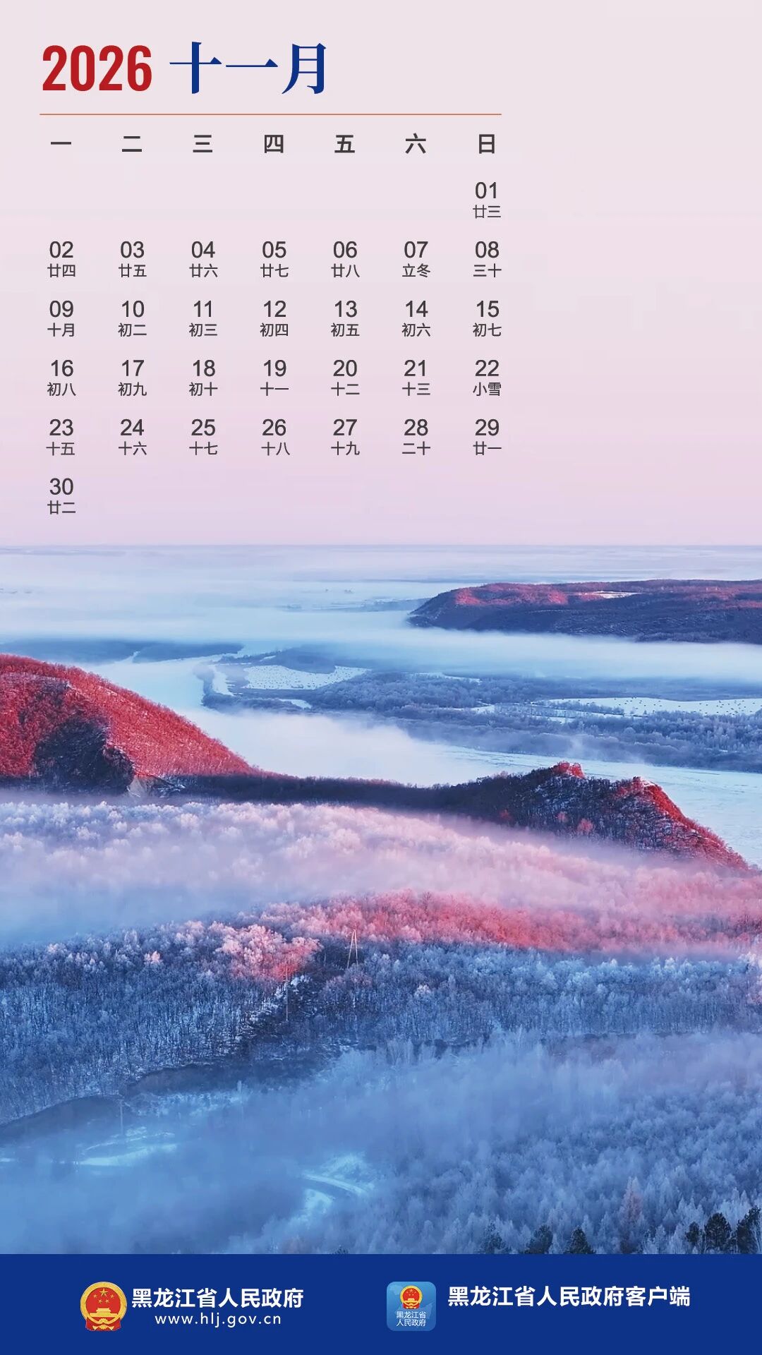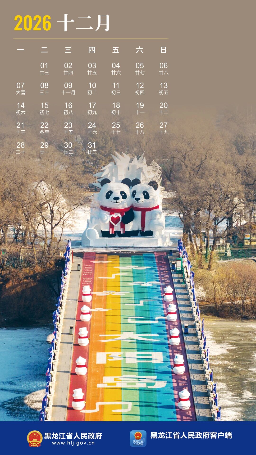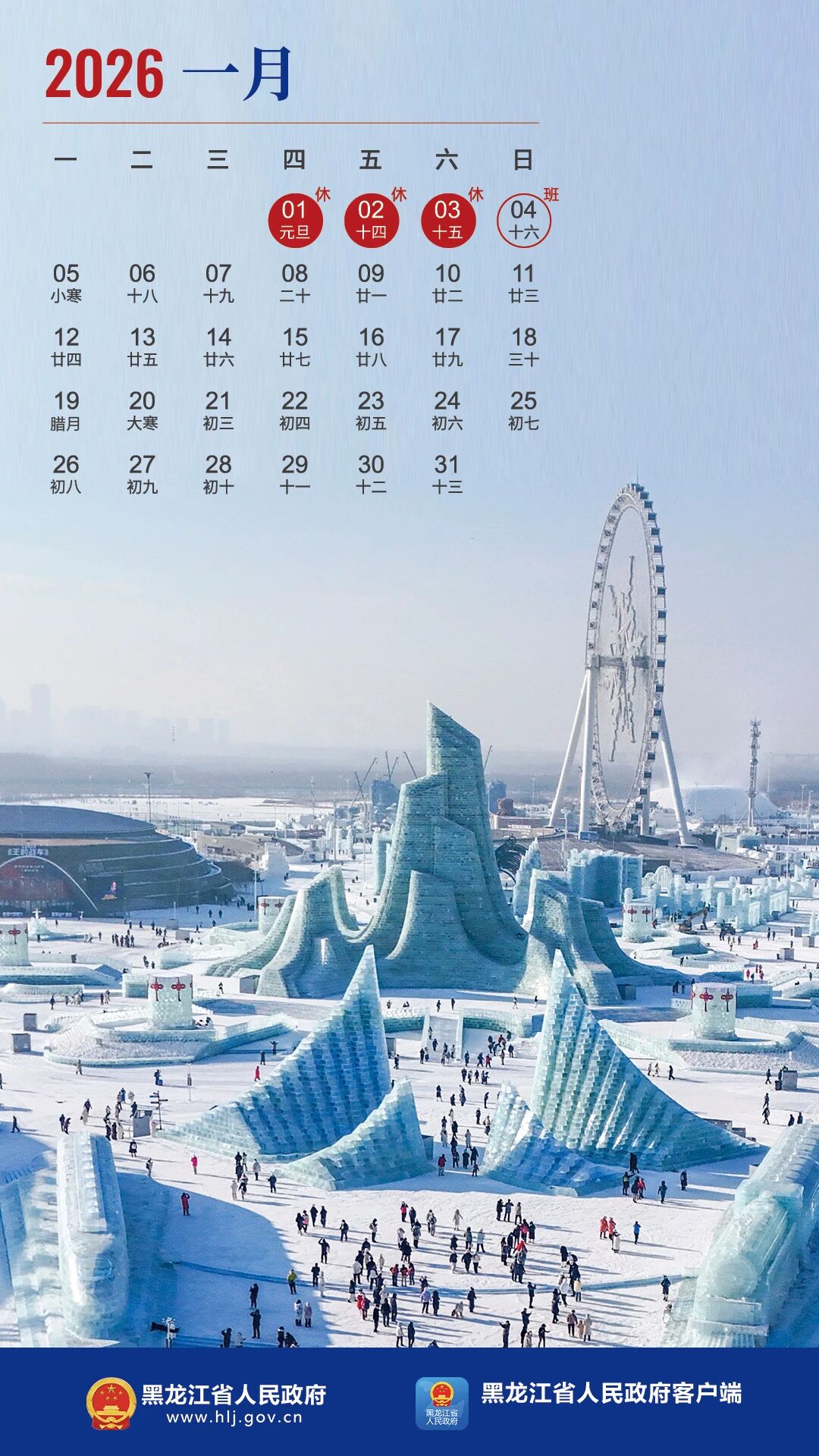 当2026年的晨光洒向龙江大地,冰封的江河孕育生机,广袤的黑土蕴藏暖意,新的一年焕然上新。我们准备了一份黑龙江专属日历,希望这份专属日历,陪你走过2026的龙江四季。