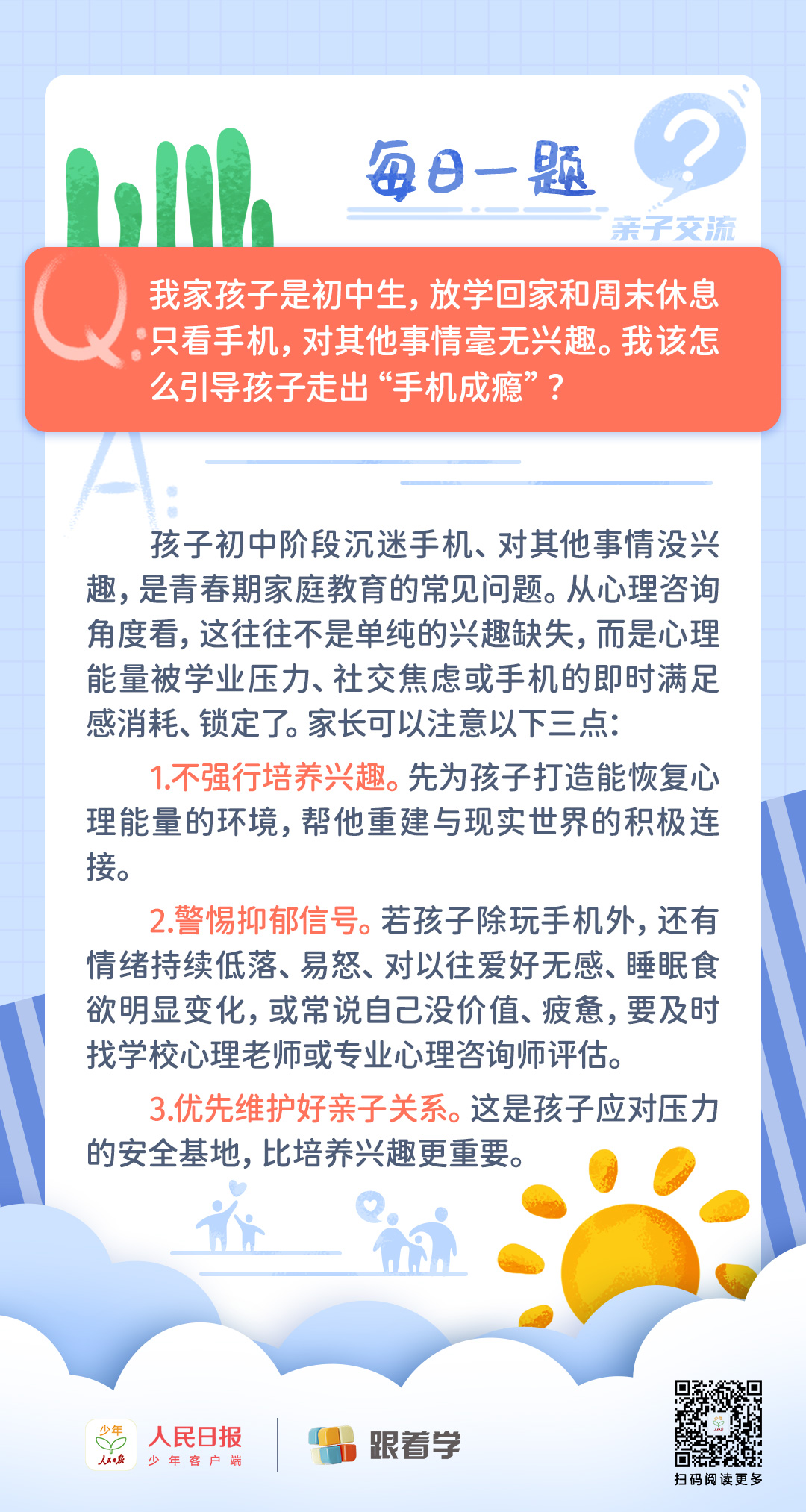 每日一题丨除手机外,孩子对运动、阅读等毫无