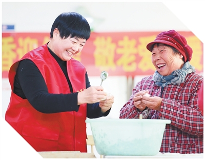 山东省临沂市郯城县郯城街道团结社区,党员志愿者和老年人一起包饺子、拉家常。 |