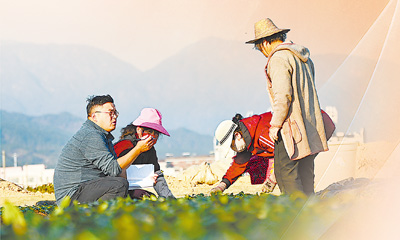 湖北省黄冈市英山县石头咀镇徐套村茶叶育苗基地,农技干部向农户讲解茶叶扦插管理知识。 |