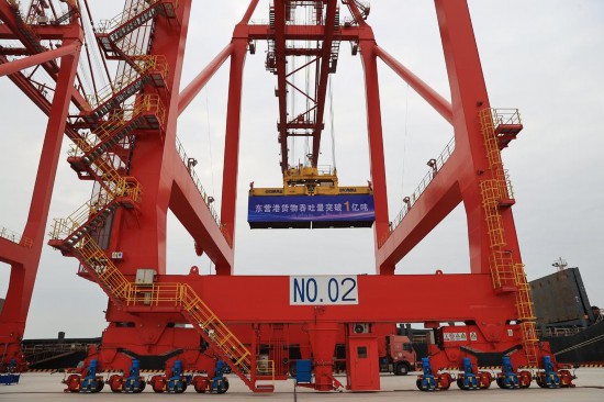 12月22日上午,随着最后一个集装箱在“万木春32”轮作业中落地,东营港2025年货物吞吐量突破1亿吨,正式迈入亿吨大港行列。