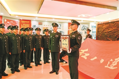 春节前夕,“红八连”因年度工作表现突出,再次荣立集体二等功。这块崭新的奖牌,与荣誉室满墙的锦旗、奖牌交相辉映。不久前下连的16名新兵,轻抚奖牌,聆听连队干部讲述奖牌背后的故事,心灵深受触动。“在这样的英雄连队当兵,唯有不懈奋斗、精武强能,才能不负使命、不负青春!”新兵王仲琪的话,道出了大家的心声。